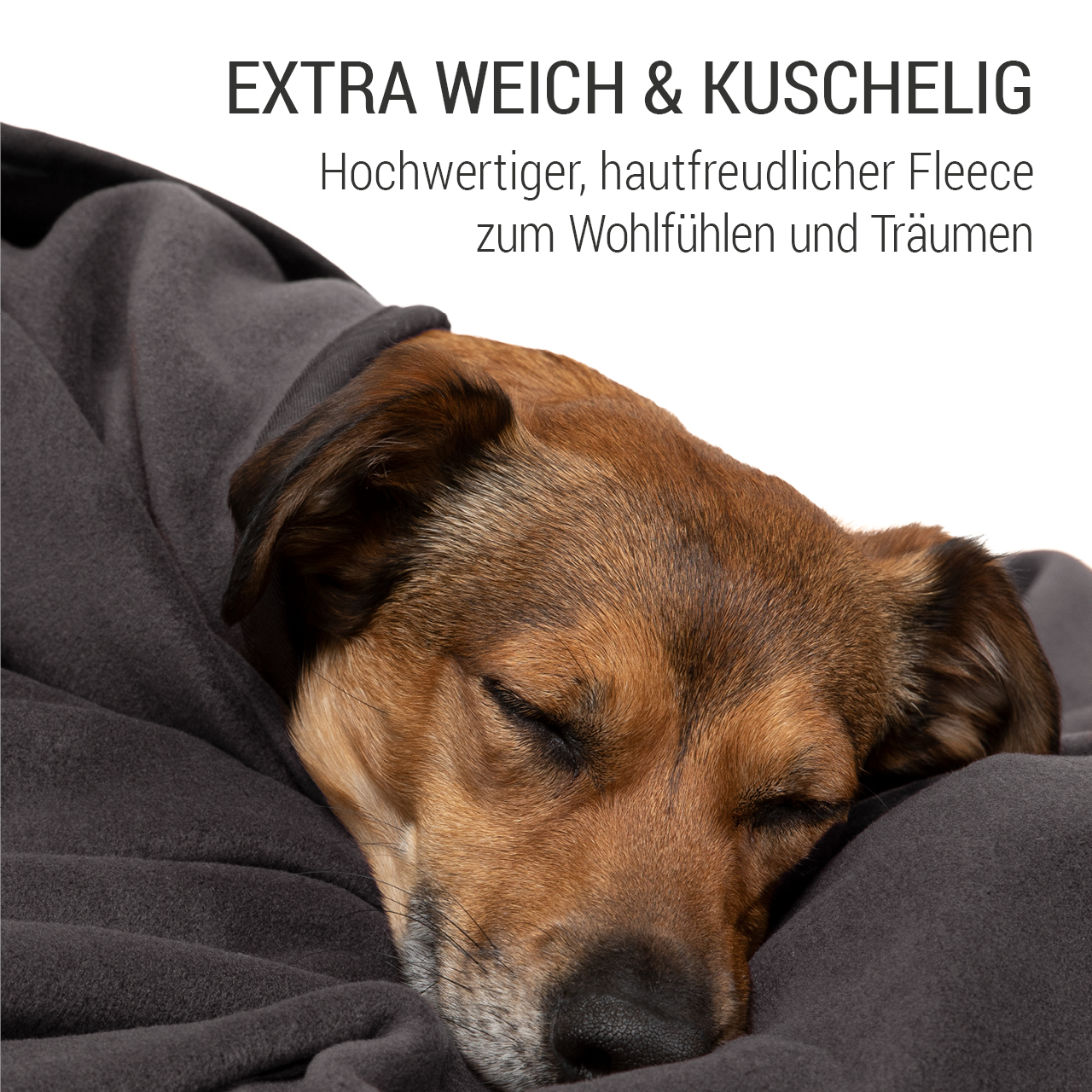 Für die kuschelige Fleece-Decke haben wir das weichste und hochwertigste Fleece ausgesucht, so dass Ihr Hund wohlig ruhen und schlafen kann.